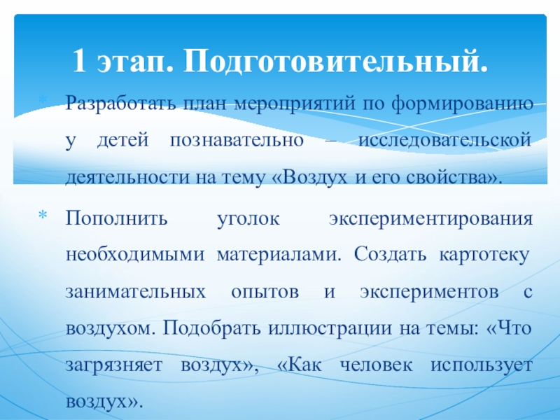 1.Собрать информацию о воздухе, узнать о нем, как можно больше.