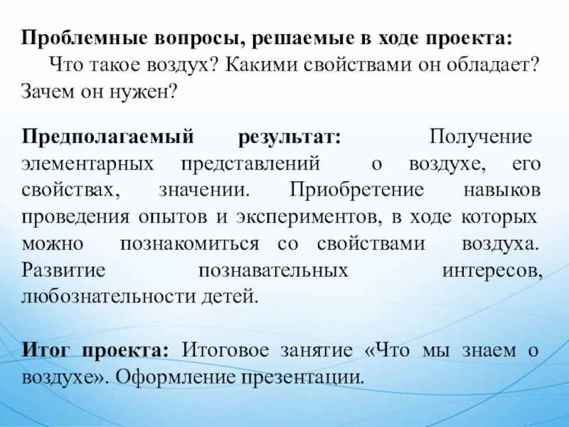 Итог проекта: Итоговое занятие «Что мы знаем о воздухе». Оформление презентации.