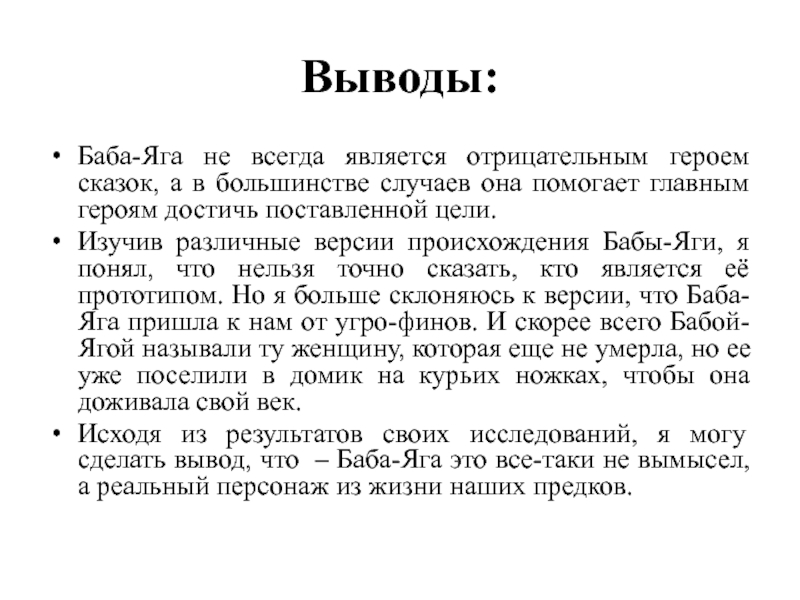 Цель данной работы: подробно изучить образ Бабы-Яги , разобраться и рассказать окружающим, кто такая Баба- Яга, является ли она реальностью или вымыслом