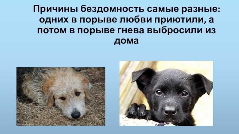 Слайд 16Ряды бездомных пополняют не только бездомные животные, родившиеся на улице, но
