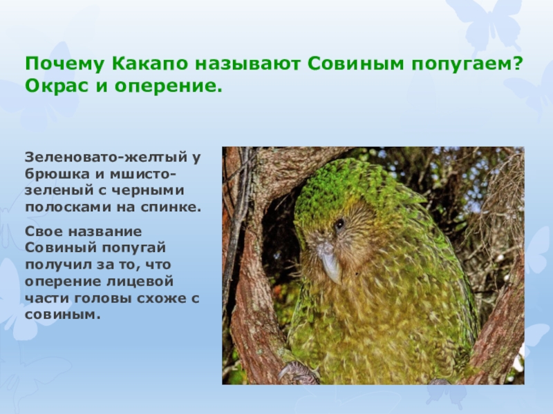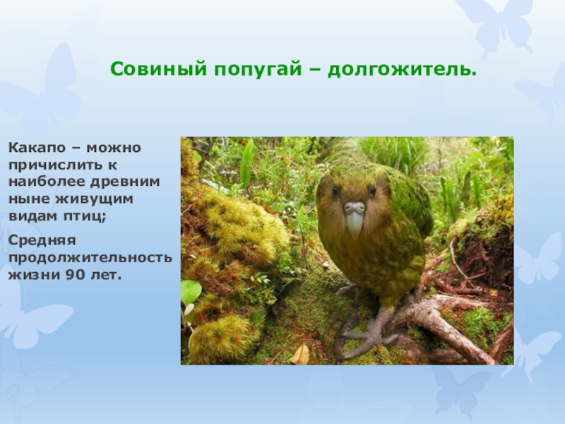 Изучить внешний вид и особенности питания, поведения, жизненный цикл Какапо;