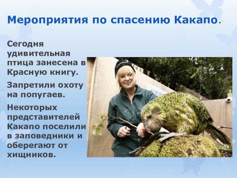 Разобраться в причинах малой численности и роли человека в вымирании Какапо;