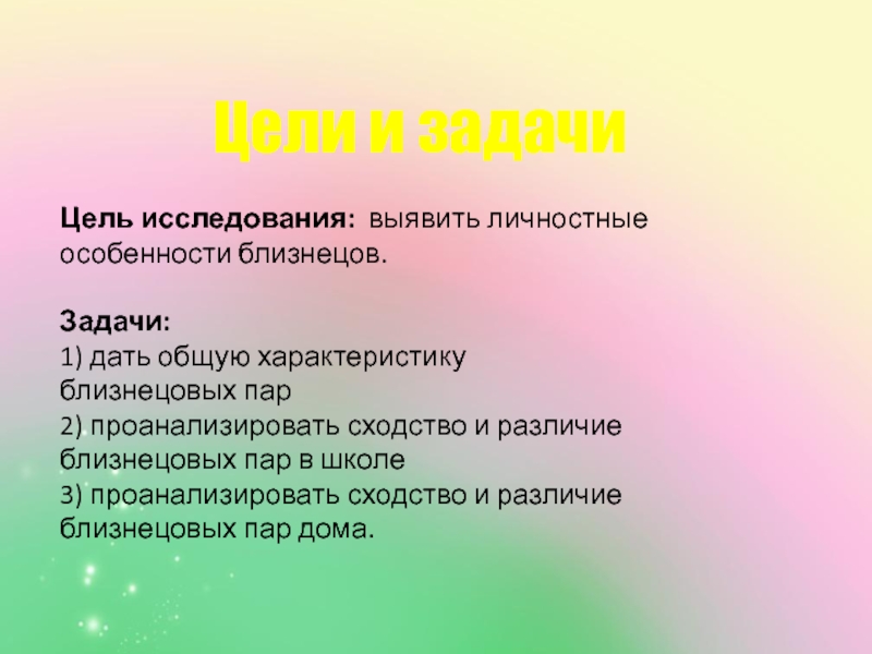 3) проанализировать сходство и различие близнецовых пар дома.