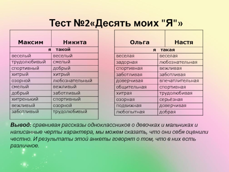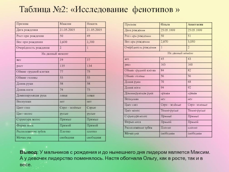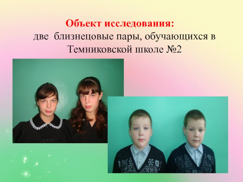 2) проанализировать сходство и различие близнецовых пар в школе