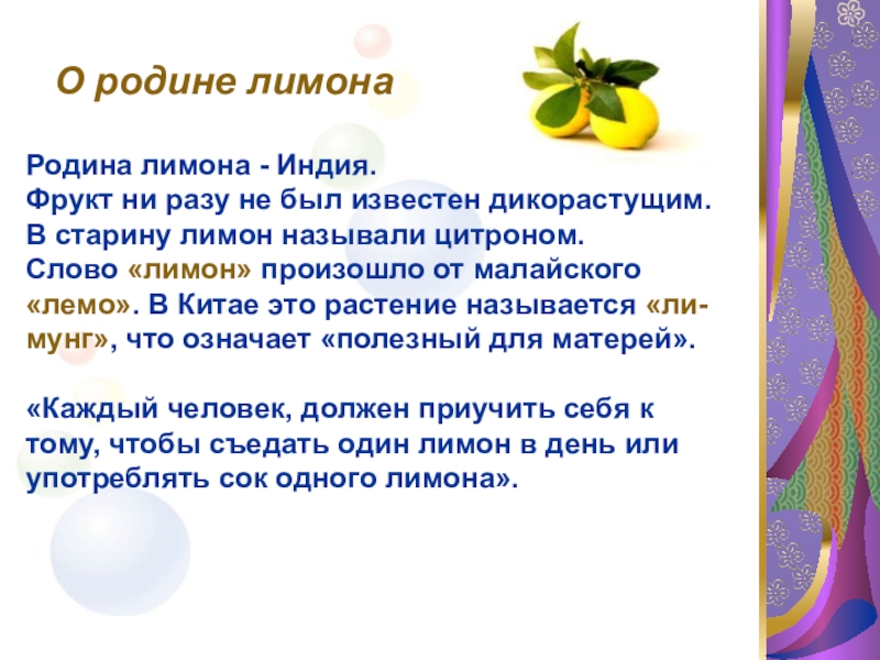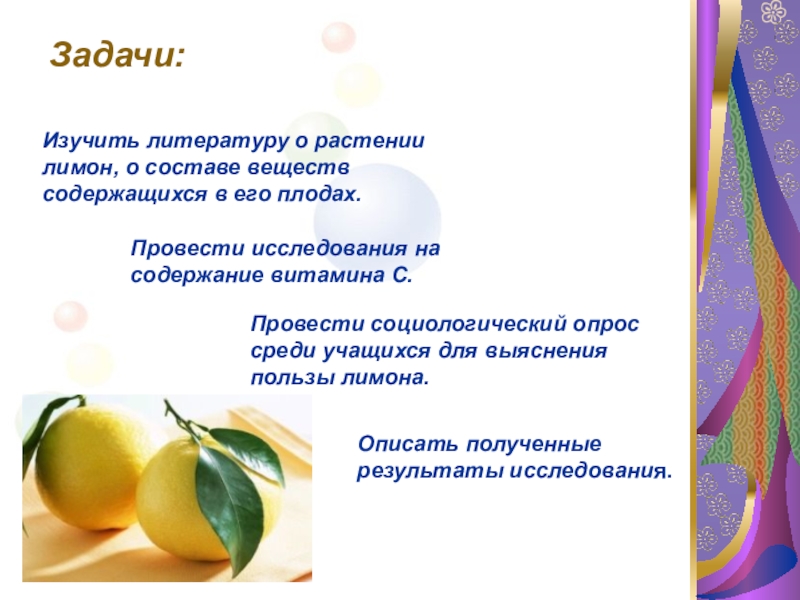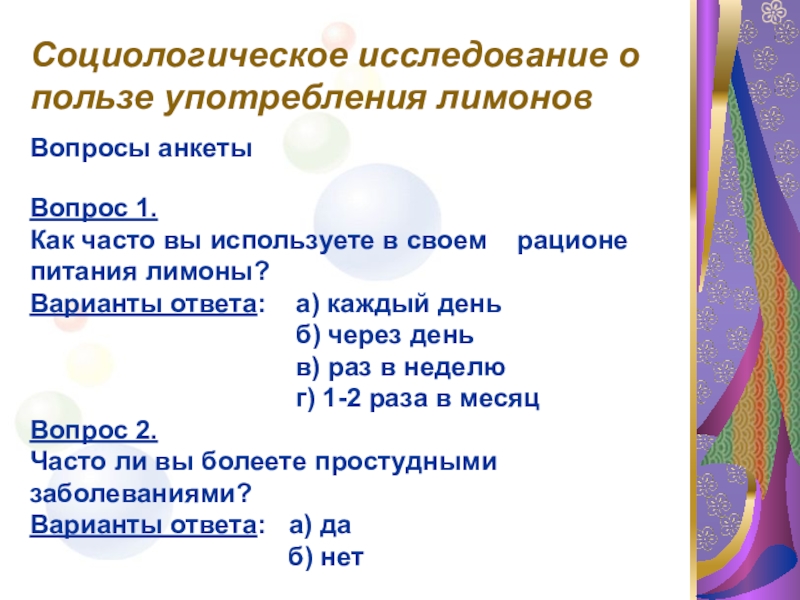 Провести социологический опрос среди учащихся для выяснения пользы лимона.