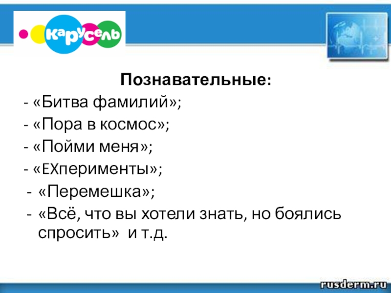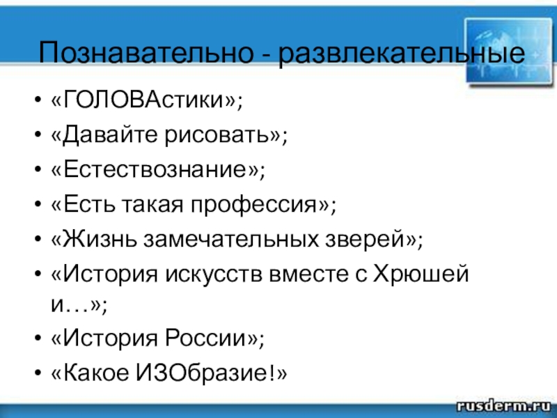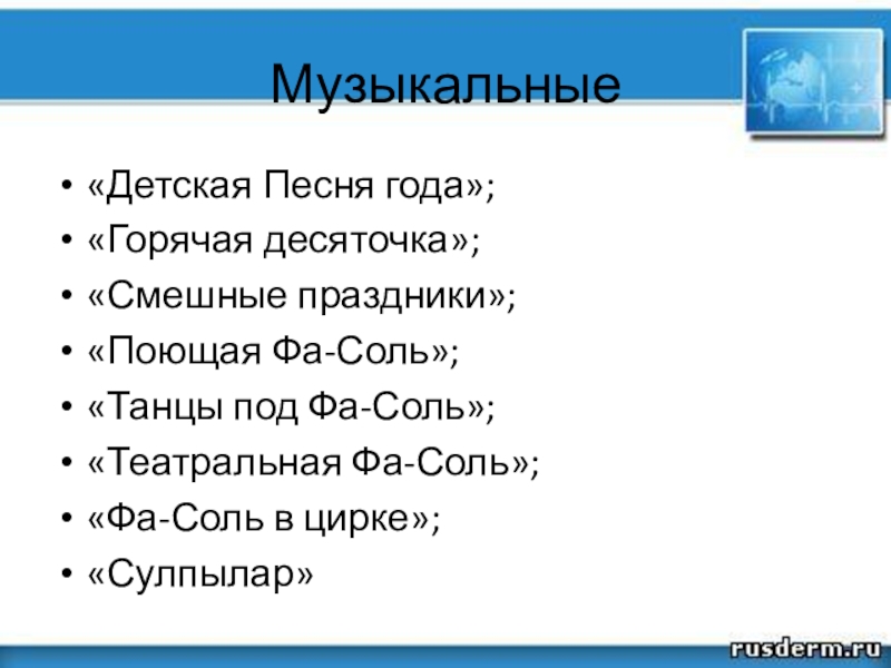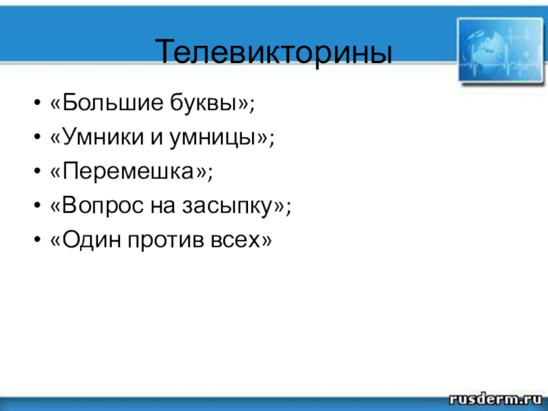 их назначением на познавательные, обу-чающие, развлекательные, спортивные, музыкальные, телевикторины.