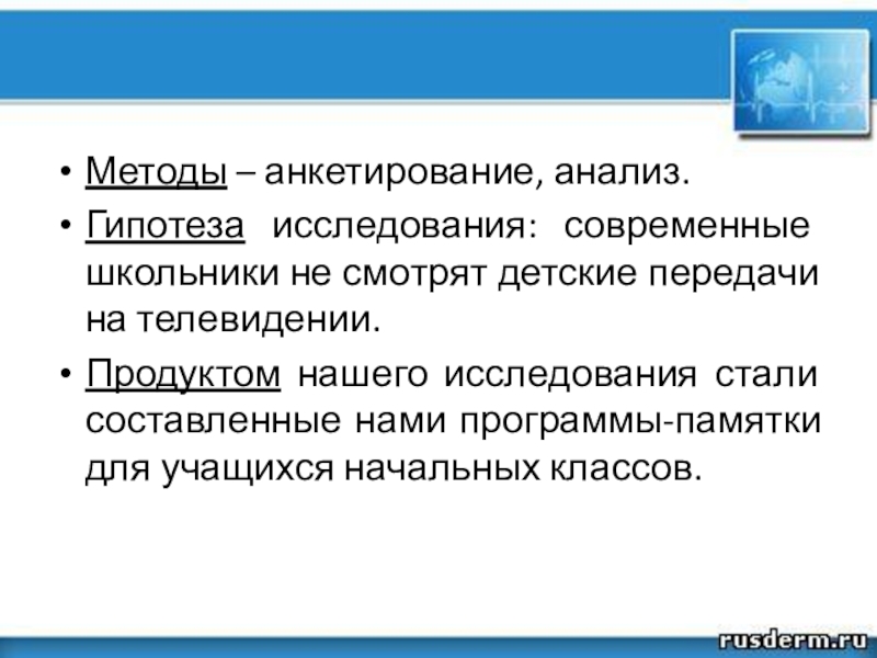 Гипотеза исследования: современные школьники не смотрят детские передачи