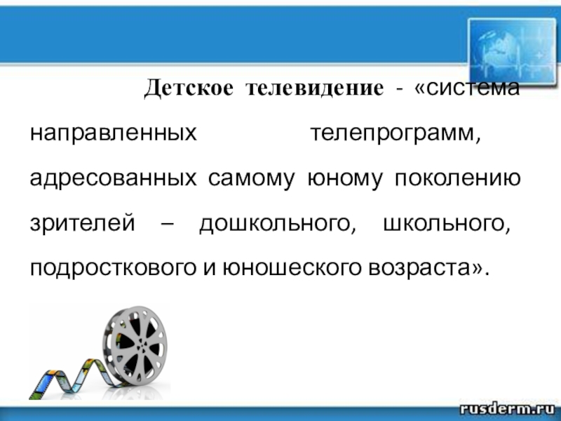 телепрограмм, адресованных самому юному поколению зрителей – дошкольного, школьного, подросткового и юношеского возраста».