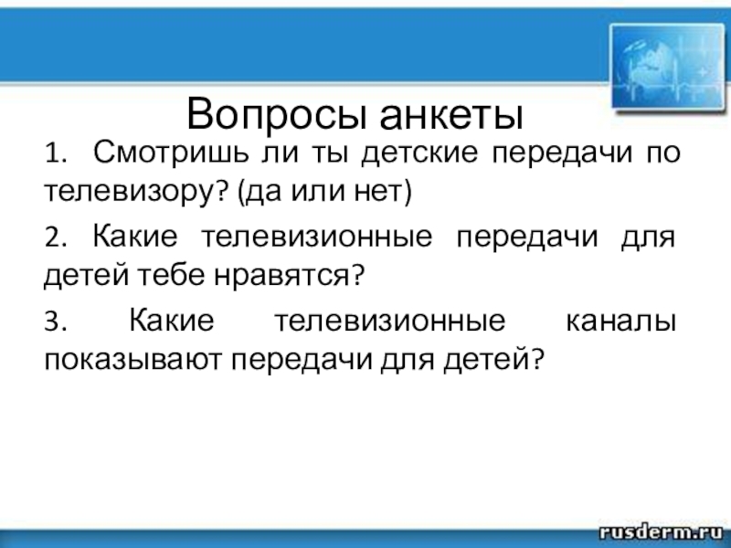 1. Смотришь ли ты детские передачи по телевизору? (да или