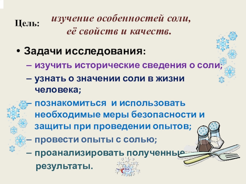 изучение особенностей соли,