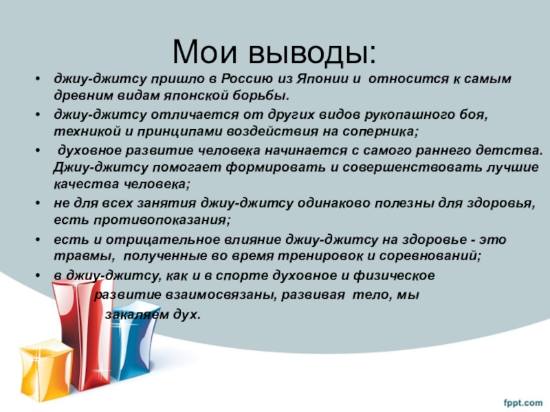 выступить перед одноклассниками и ознакомить с информацией, полученной во время моих исследований, и своим примером увлечь ребят занятиями джиу-джитсу.