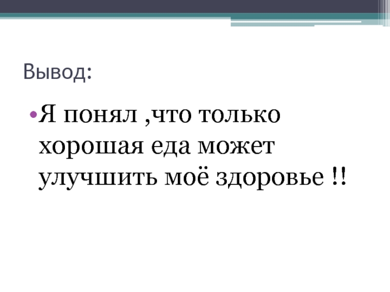Вывод:Я понял ,что только хорошая еда может улучшить моё здоровье !!