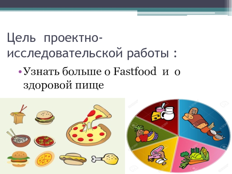 Цель проектно-исследовательской работы :Узнать больше о Fastfood и о здоровой пище