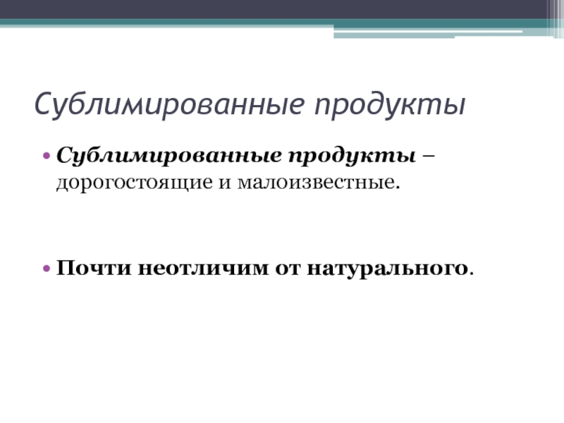 Сублимированные продуктыСублимированные продукты – дорогостоящие и малоизвестные. Почти неотличим от натурального.