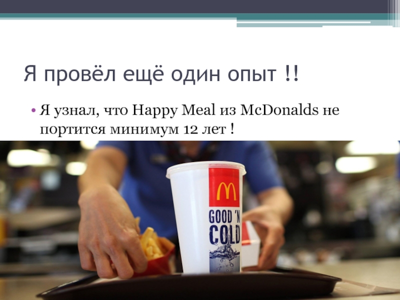 Я провёл ещё один опыт !!Я узнал, что Happy Meal из McDonalds не портится минимум 12 лет