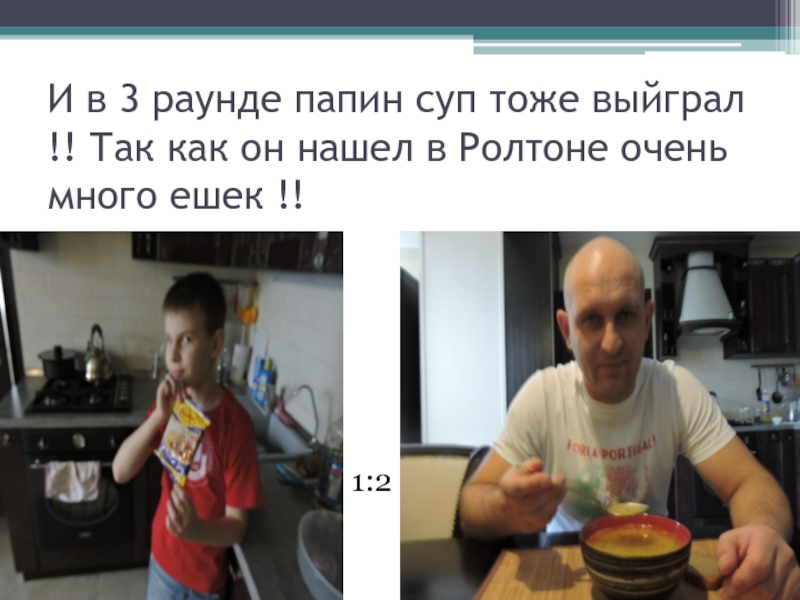 Слайд 11И в 3 раунде папин суп тоже выйграл !! Так как