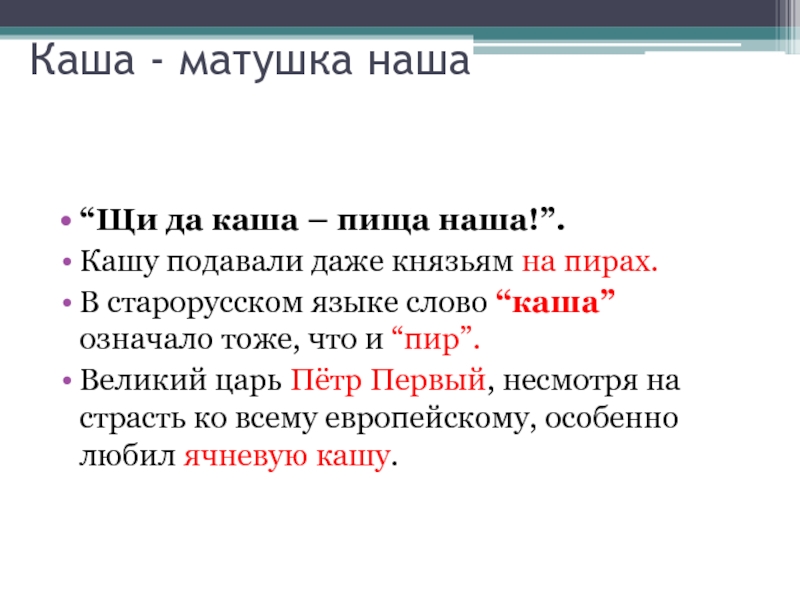 В старорусском языке слово “каша” означало тоже, что и “пир”.