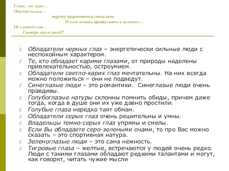 Синеглазые люди – это романтики. Синеглазые люди очень правдивы.