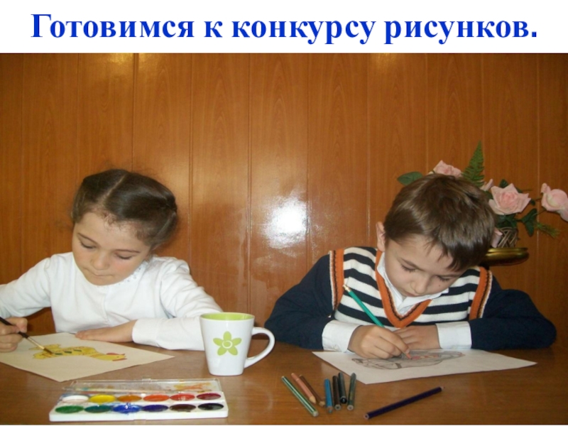 Слайд 15Готовимся к конкурсу рисунков.