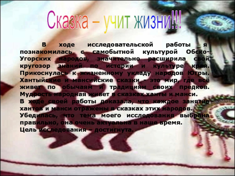 Я предположила, что изучение сказок обско-угорских народов позволит узнать о жизни,