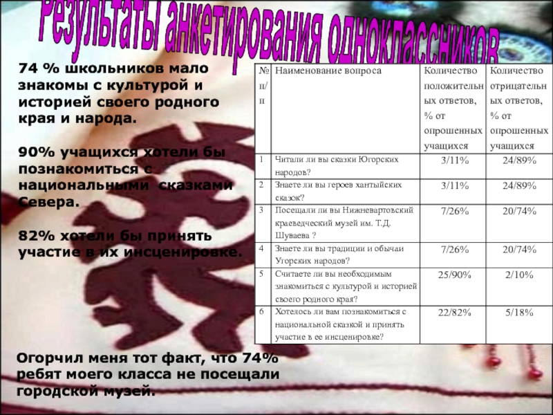 Огорчил меня тот факт, что 74% ребят моего класса не посещали городской музей.
