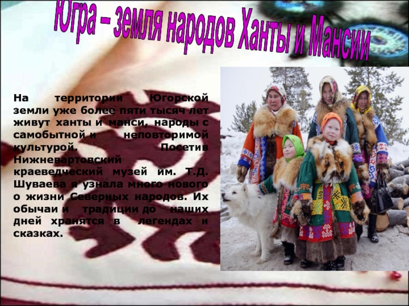 обычаях и традициях коренных жителей Югры, научит уважать самобытную культуру этих малочисленных северных народов.