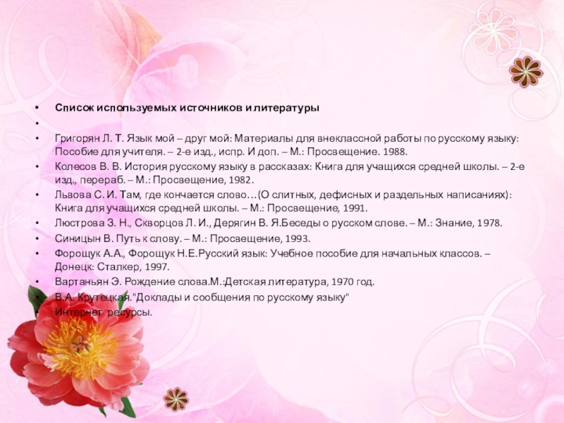 мой: Материалы для внеклассной работы по русскому языку: Пособие для учителя. – 2-е изд., испр. И доп. – М.: Просвещение. 1988.