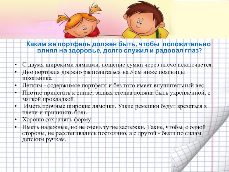 Каким же портфель должен быть, чтобы положительно влиял на здоровье, долго служил и радовал