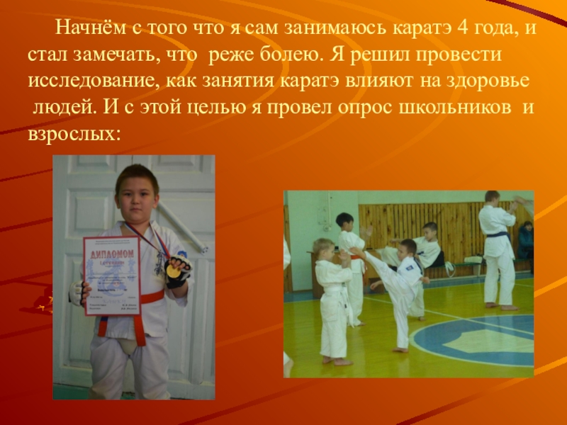 4 года, и стал замечать, что реже болею. Я решил провести исследование, как занятия каратэ влияют на здоровье