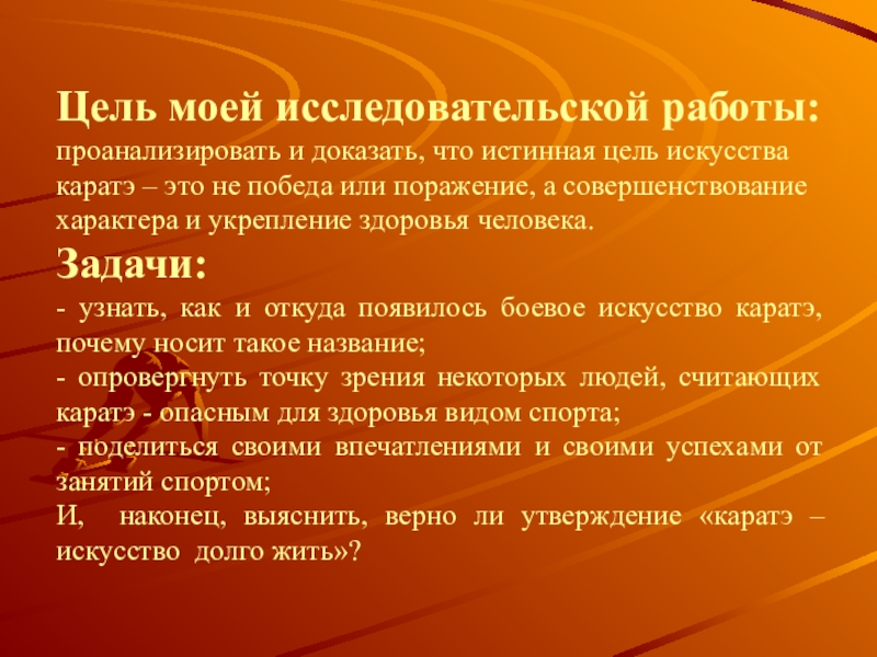 - опровергнуть точку зрения некоторых людей, считающих каратэ - опасным для здоровья видом спорта;