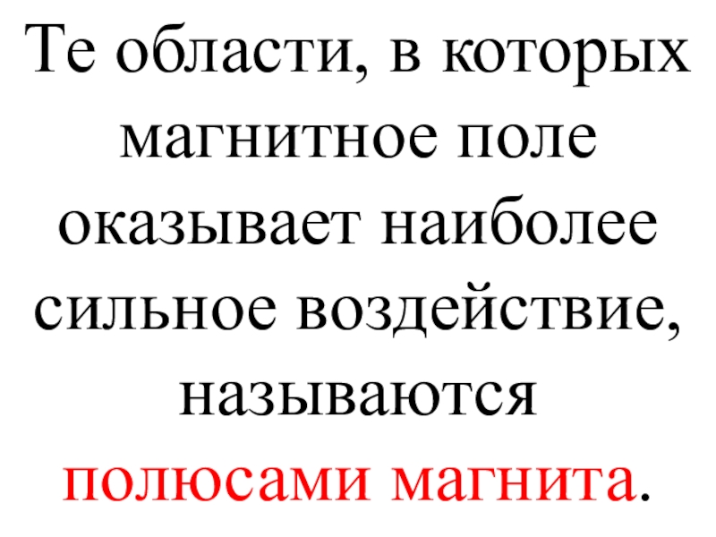 Слайд 25Те области, в которых магнитное поле оказывает наиболее сильное воздействие, называются