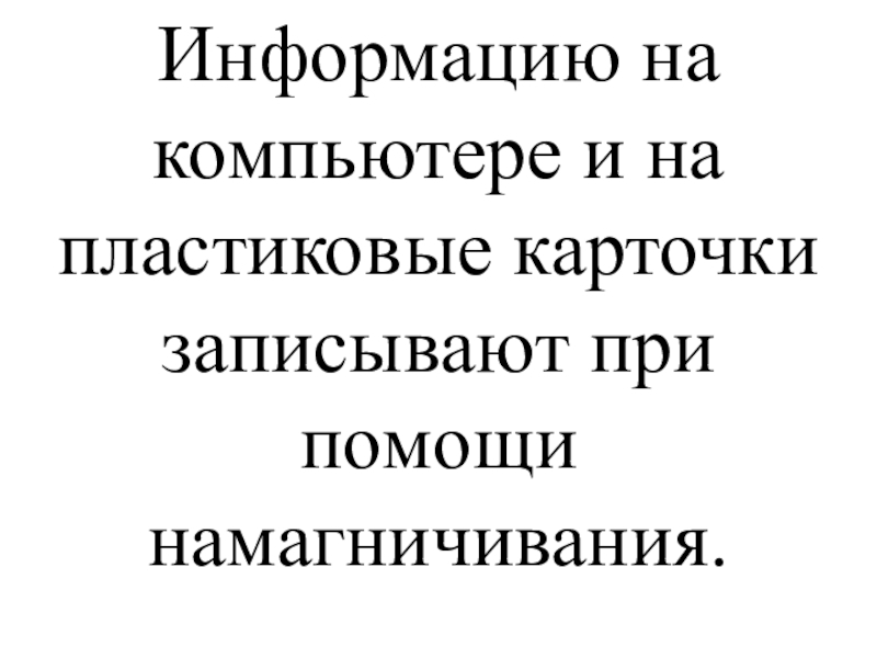 Слайд 47Информацию на компьютере и на пластиковые карточки записывают при помощи намагничивания.