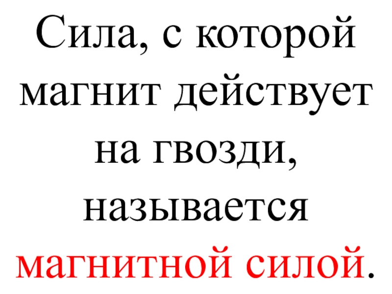 Слайд 11Сила, с которой магнит действует на гвозди, называется магнитной силой.
