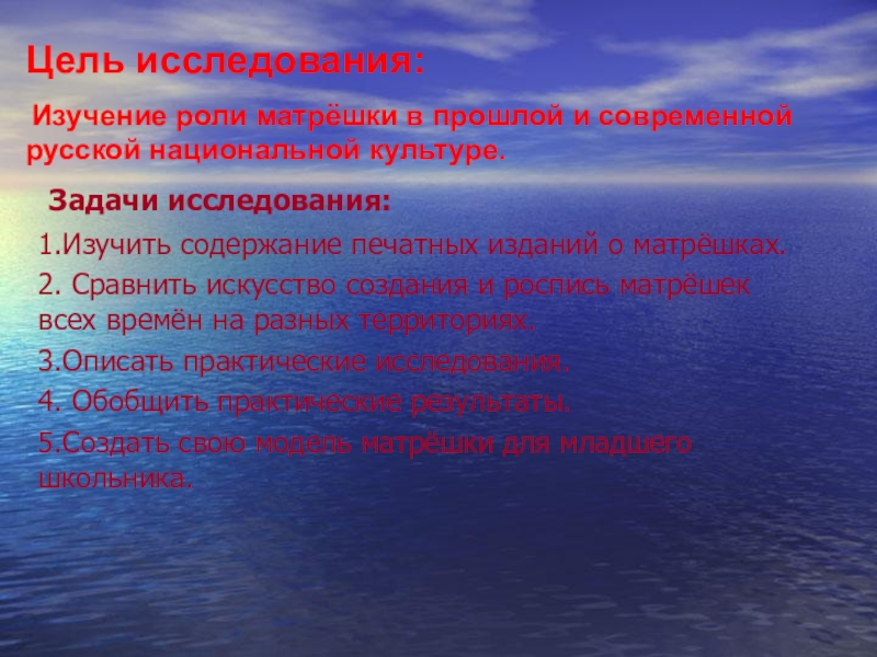 Изучение роли матрёшки в прошлой и современной русской национальной культуре.