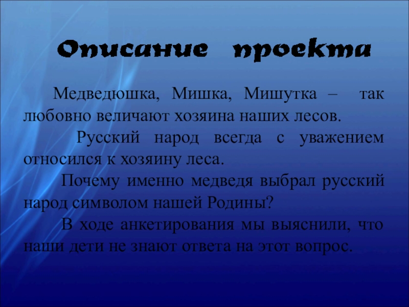 Слайд 5Мы считаем, что изображение медведя как символа нашей страны связано с