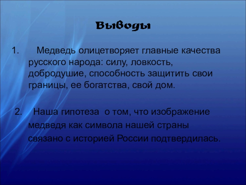 Слайд 16 Медведь олицетворяет главные качества русского народа: силу, ловкость, добродушие,