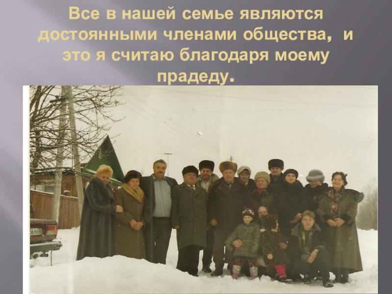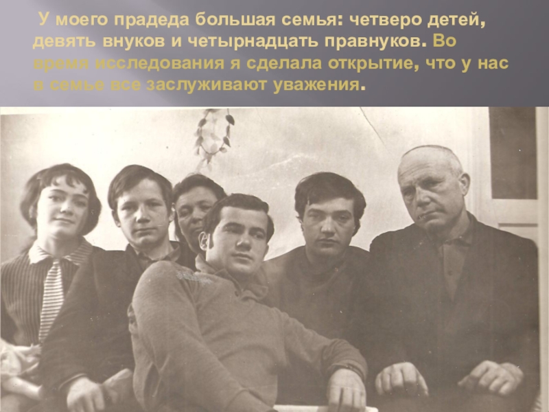 Слайд 19 У моего прадеда большая семья: четверо детей, девять внуков и