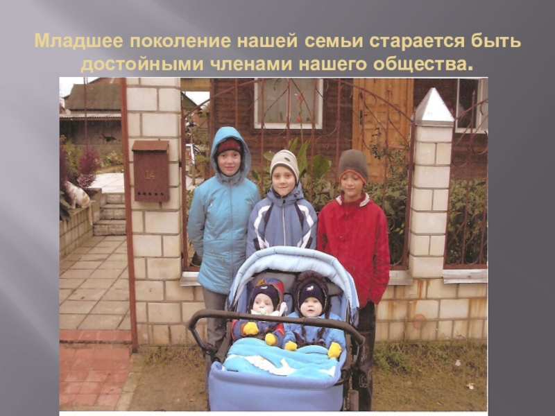 Слайд 22Младшее поколение нашей семьи старается быть достойными членами нашего общества.