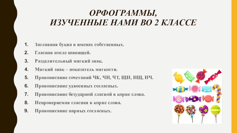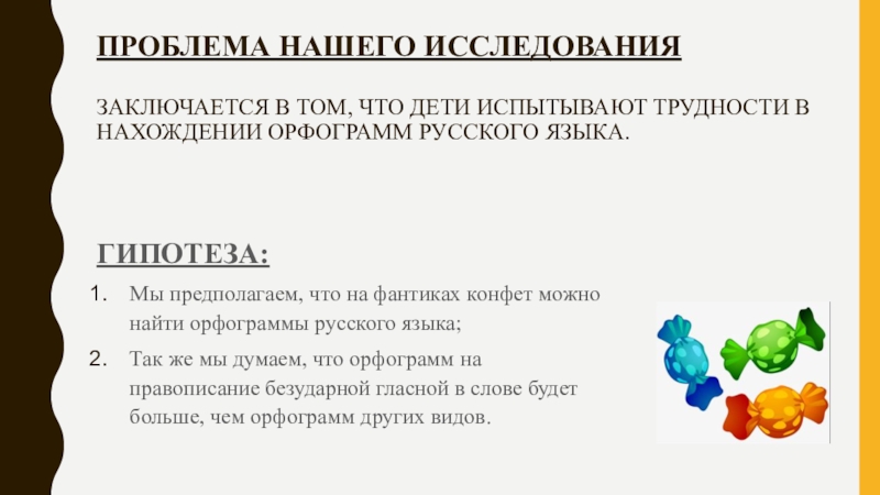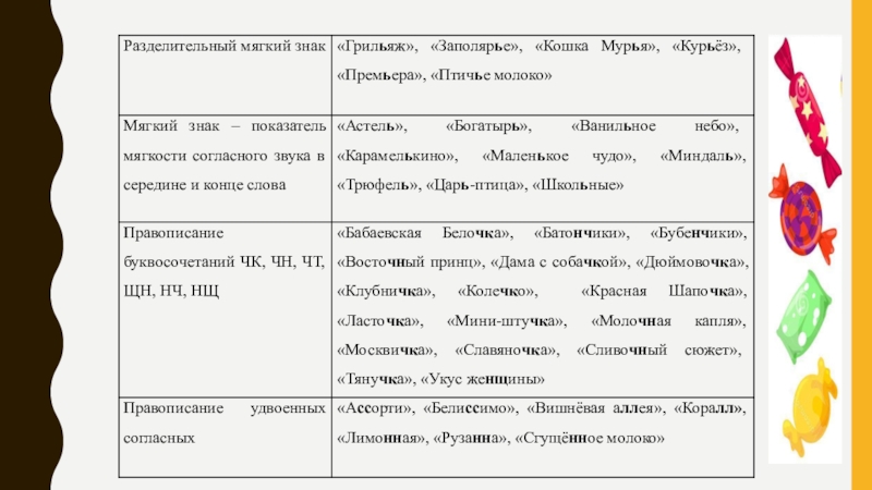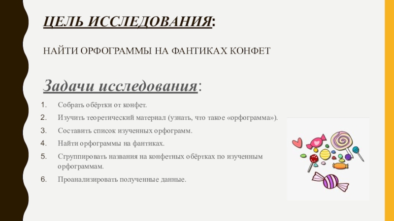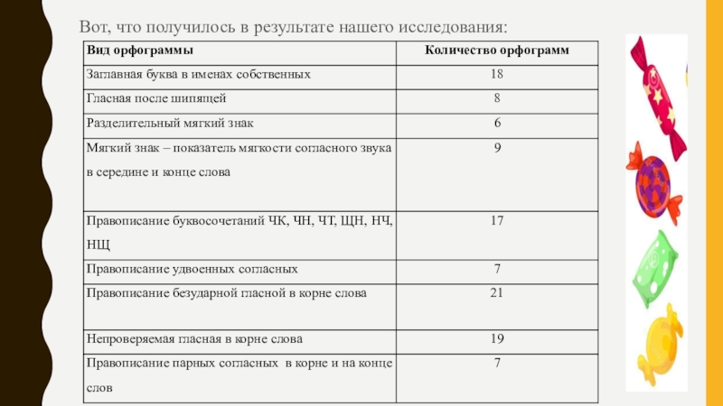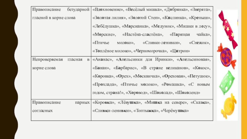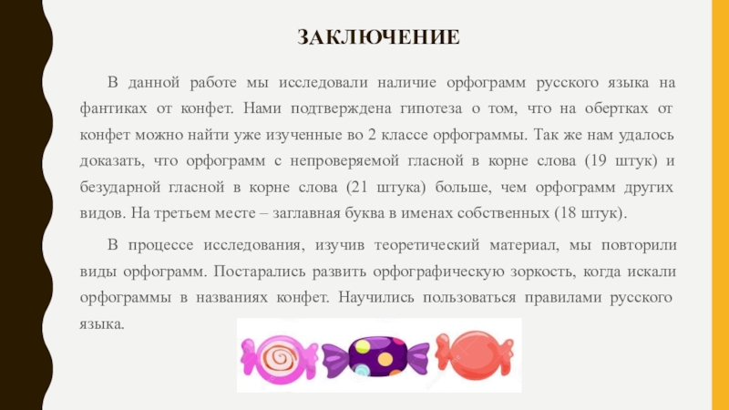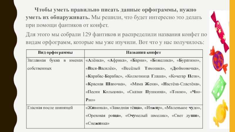 Мы предполагаем, что на фантиках конфет можно найти орфограммы русского языка;
