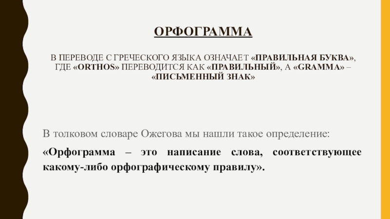 «Орфограмма – это написание слова, соответствующее какому-либо орфографическому правилу».