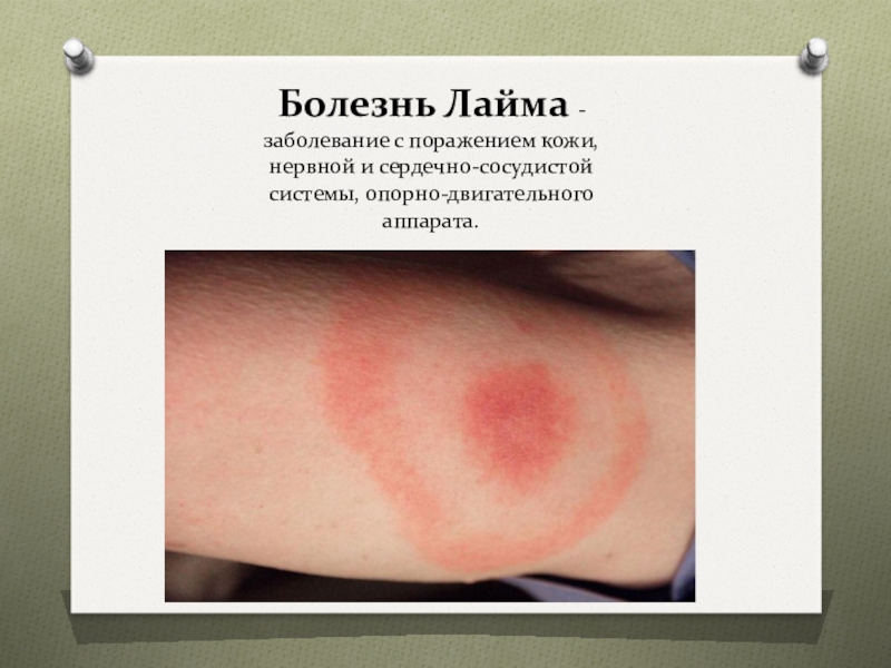 Слайд 8Болезнь Лайма - заболевание с поражением кожи, нервной и сердечно-сосудистой системы,