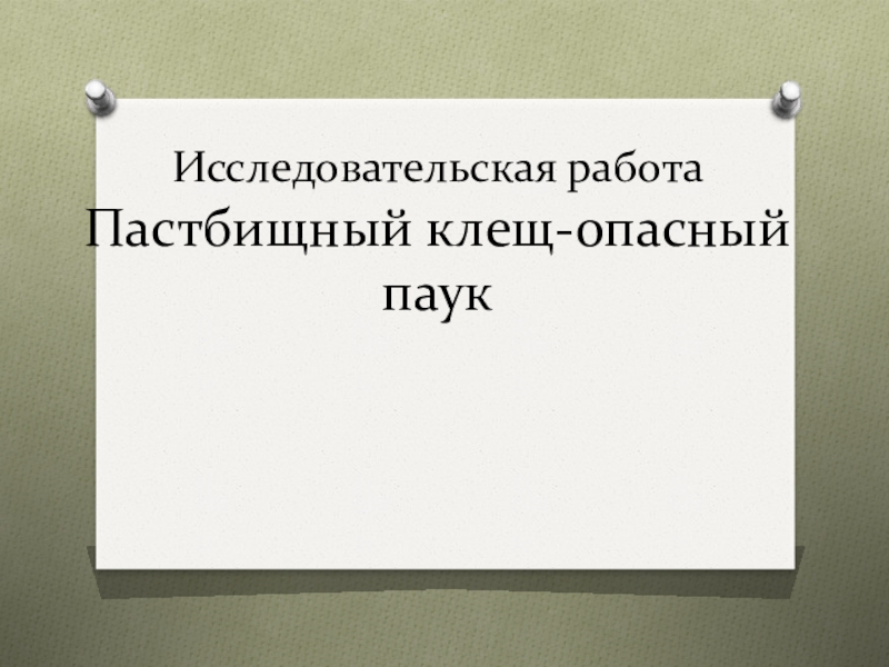 Слайд 1Исследовательская работа Пастбищный клещ-опасный паук
