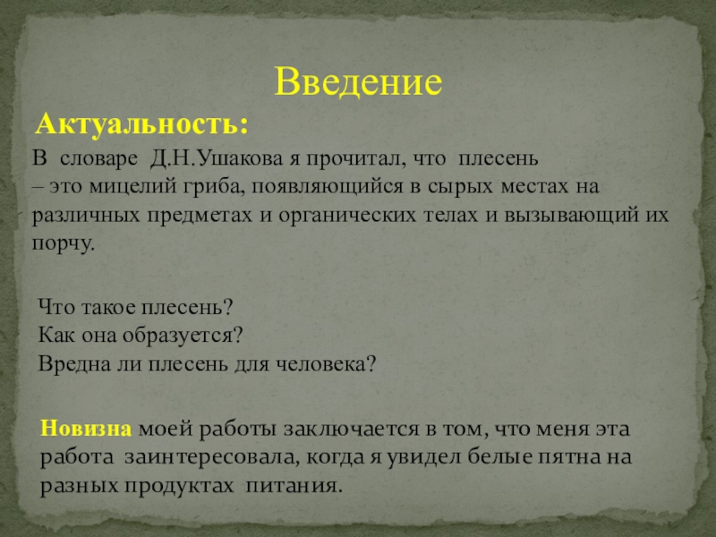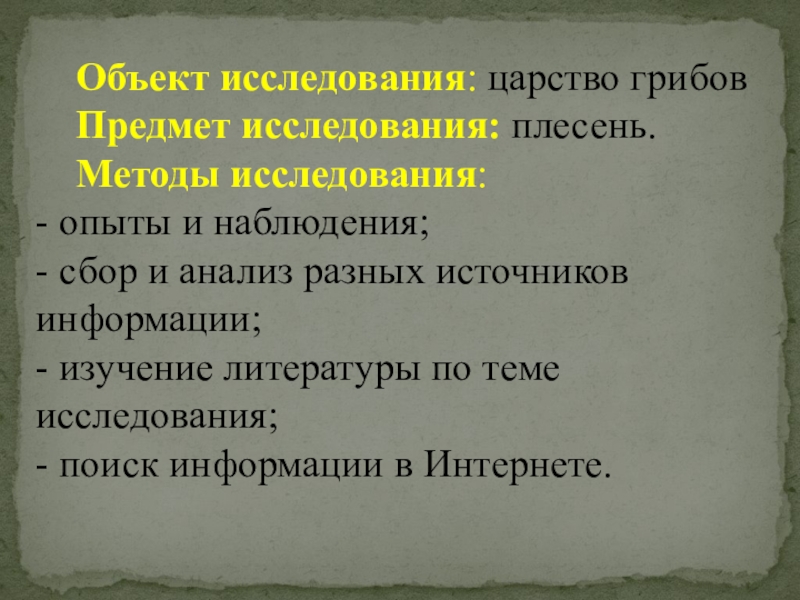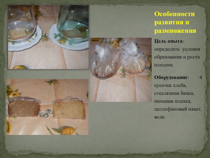 Цель работы: изучение особенности строения и жизнедеятельности плесени.