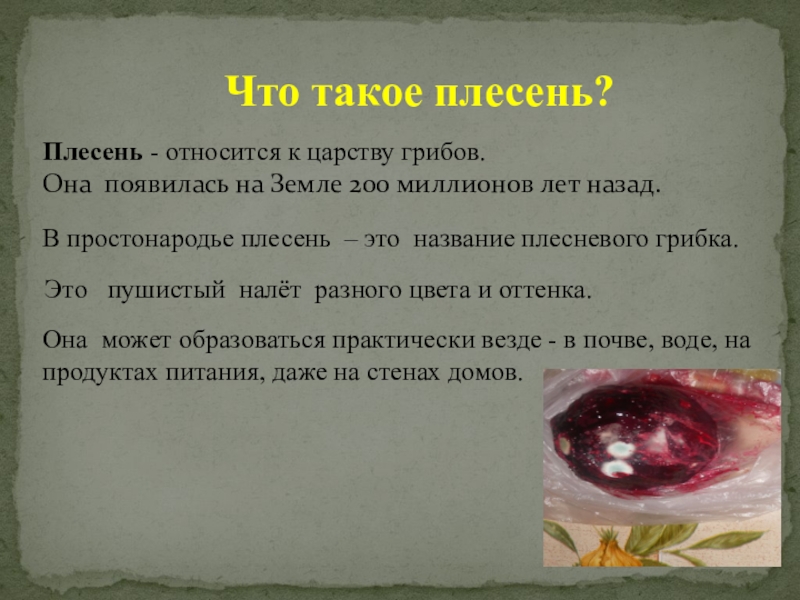 – это мицелий гриба, появляющийся в сырых местах на различных предметах и органических телах и вызывающий их порчу.