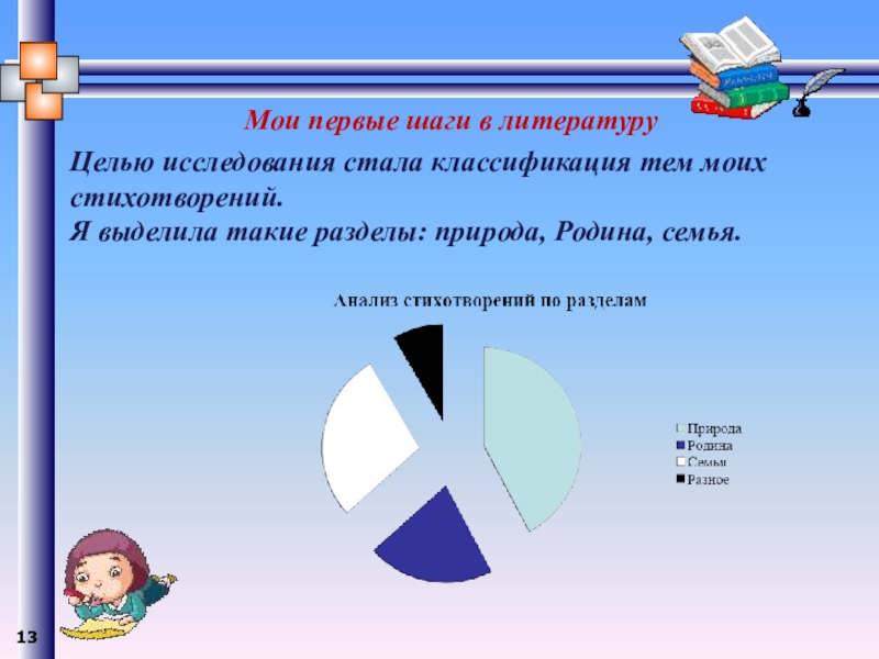 Объект исследования: изучить литературное творчество сверстников, классификация тематики своих стихотворений.