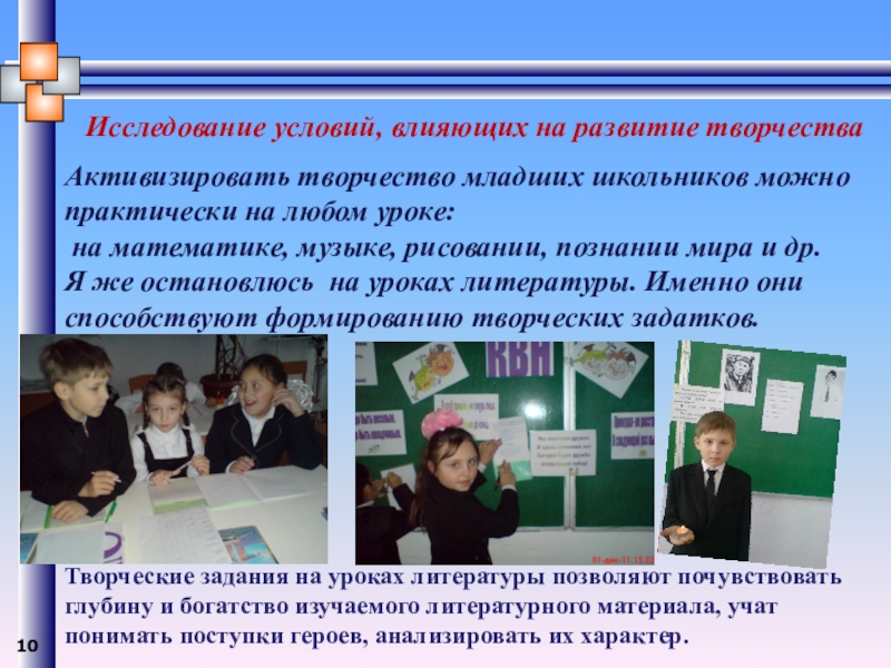 Творческие задания на уроках литературы позволяют почувствовать глубину и богатство изучаемого литературного материала, учат понимать поступки героев, анализировать их характер.