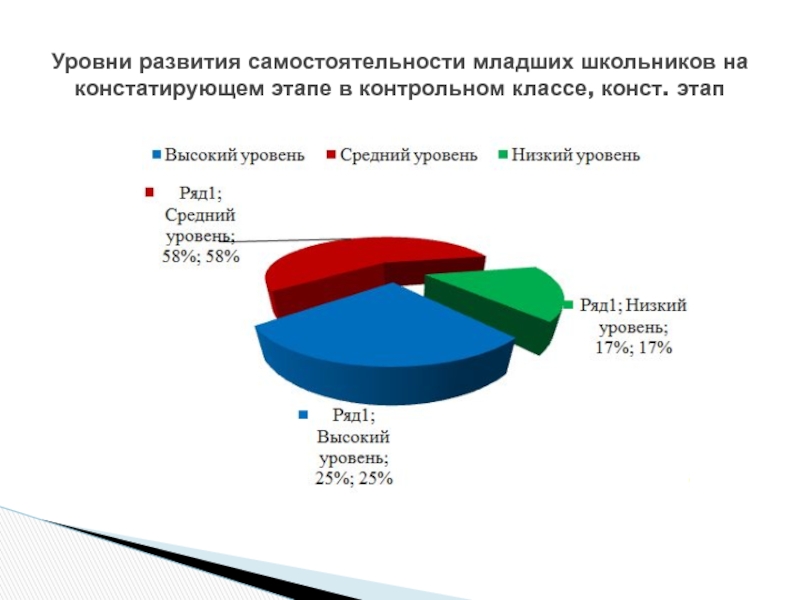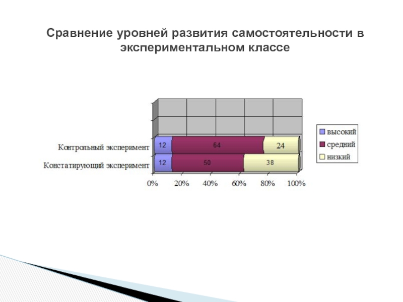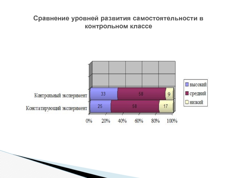 как в экспериментальном, так и в контрольном классах. Следует отметить, что в контрольном классе не применялись задания на повышения уровней развития самостоятельности.