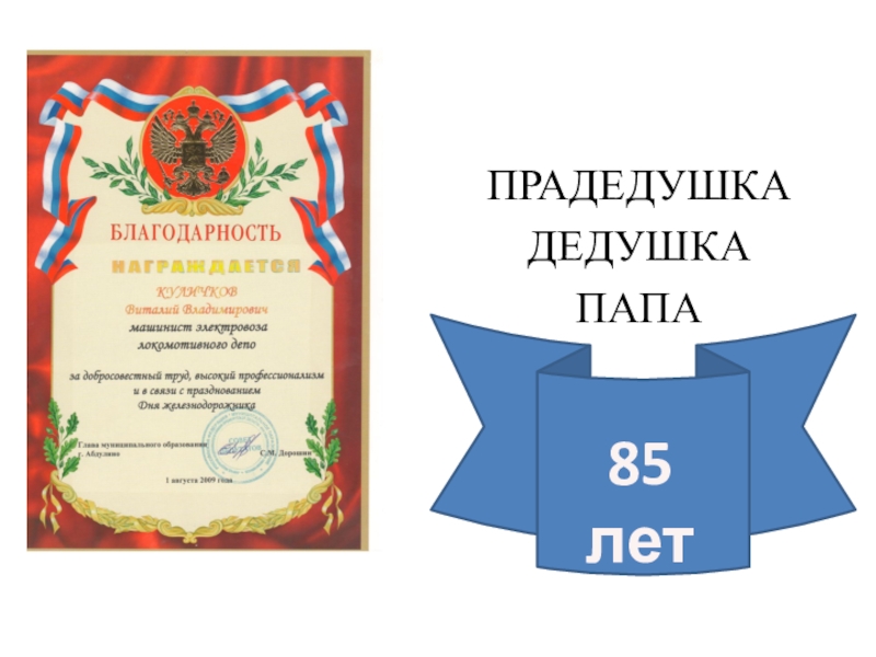 Записать воспоминания ныне живущих представителей династии железнодорожников Куличковых.