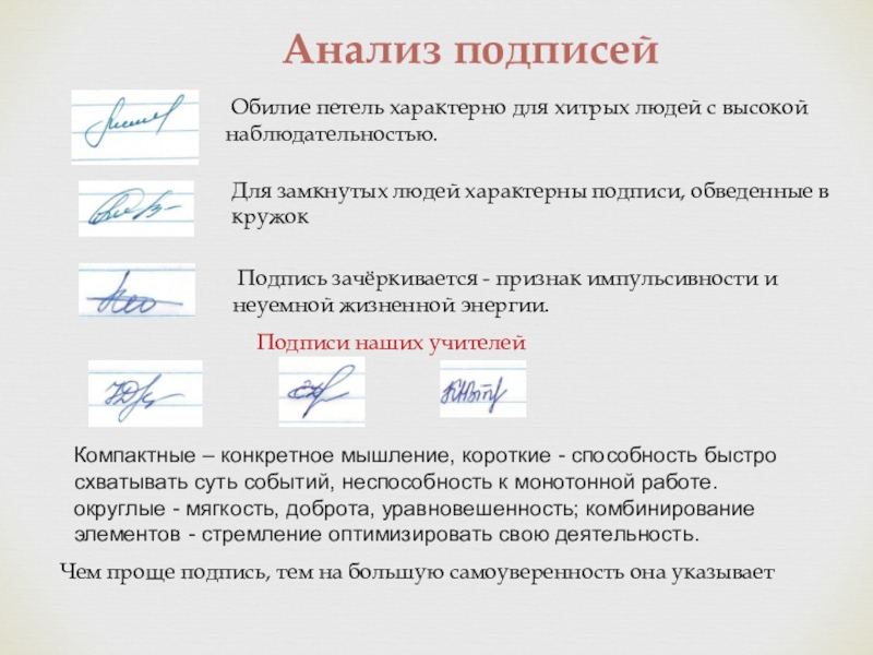 Чем проще подпись, тем на большую самоуверенность она указывает