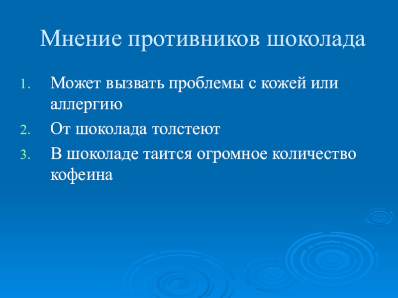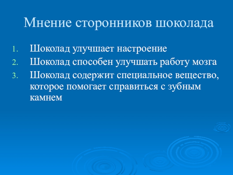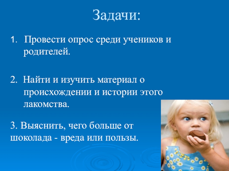 3. Выяснить, чего больше от шоколада - вреда или пользы.